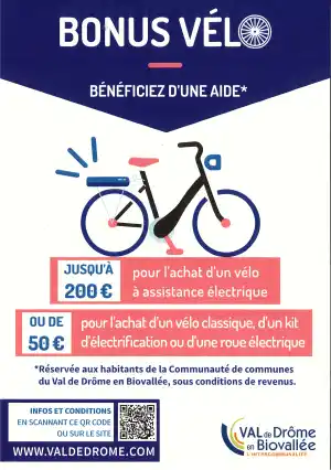 Ce dispositif est réservé aux personnes physiques majeures habitant le Val de Drôme (dans la limite de l'enveloppe budgétaire). L'aide ne pourra dépasser 40% du prix d'achat du vélo et ne sera versée qu'une seule fois par habitant.