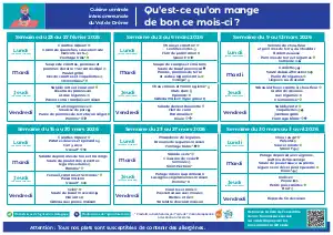 Les enfants sont encadrés durant le temps de restauration par Corinne VERNET et Marie-Ange COONEN, salariées de l'Amicale de l'école. Les repas sont fournis par la cuisine centrale de la Communauté de Communes du Val de Drôme.