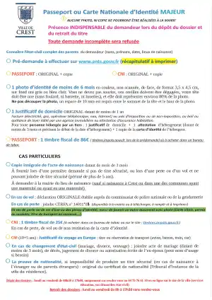 Le renouvellement de votre carte d'identité ou de votre passeport ne se fait plus à la mairie de Vaunaveys-la-Rochette. Il faut désormais prendre rendez-vous avec la mairie de Crest et fournir les documents listés ci-dessous.