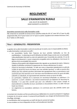 La salle d'animation rurale est mise à disposition à titre onéreux aux usagers de la commune et hors commune. Pour la réserver et vérifier les disponibilités, contactez le secrétariat de mairie au 04.75.25.07.71